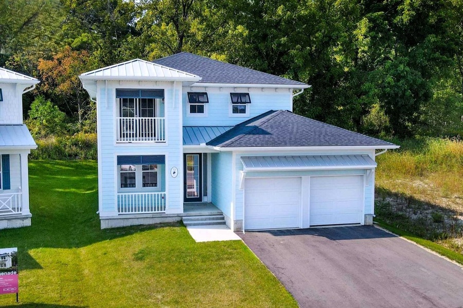 We’re back this week at the Kokomo Beach Club, one of Port Stanley’s more colourful and exciting new developments being built by Wastell Homes. This particular model ― dubbed The Sun and one of many models being built as part of the development ― is a great option for those looking for room to spare. The model has a charming blend of coastal architecture on the outside (designed with a custom colour palette of James Hardie cement board siding and Bahama window shutters, giving it a charming and upscale beach house look) and modern features on the inside.