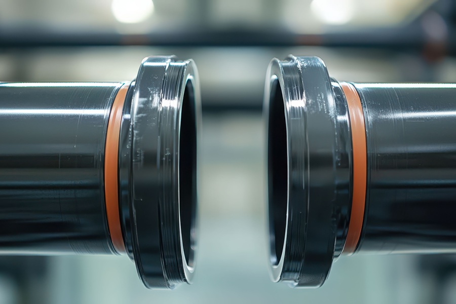 Close Up of Industrial Pipes with Sealing Gaskets in a Factory Setting